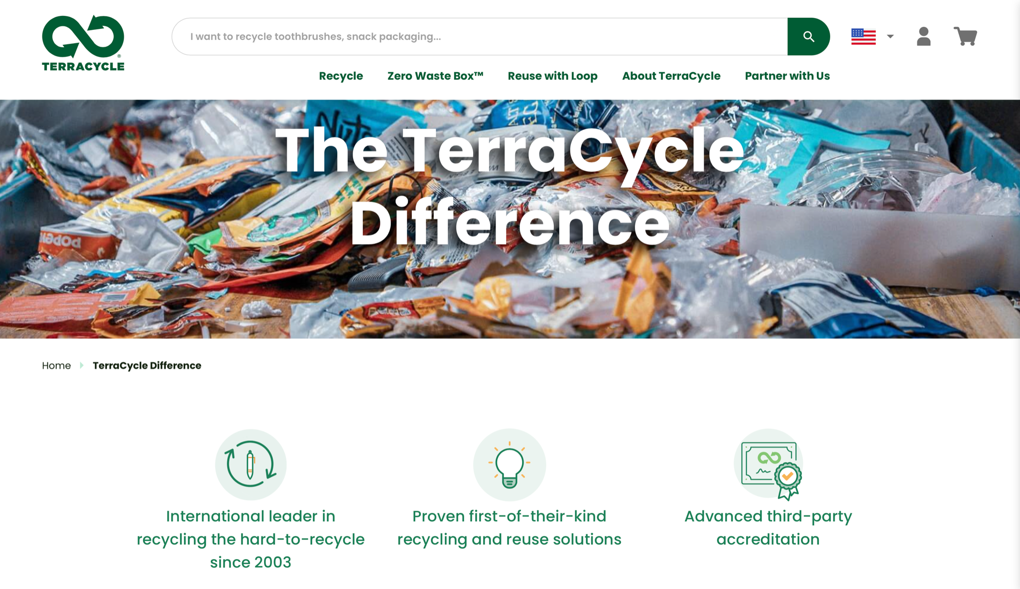 With the public becoming skeptical of recycling, and recognizing a lack of understanding of its services, TerraCycle sought to create a webpage that explained what makes the company different from traditional recyclers.